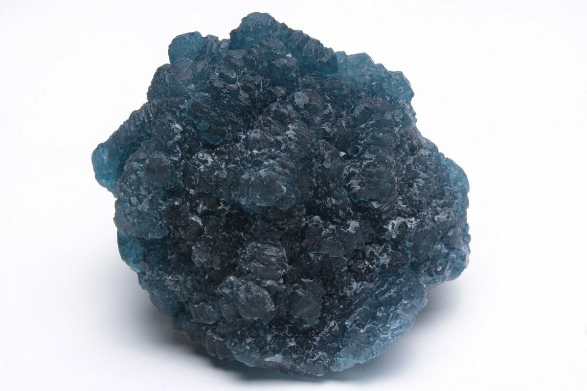 This is a beautiful deep-blue fluorite specimen collected from the Number 4 Mine in the Huanggang Fe-Sn deposit of Inner Mongolia, China. The fluorite crystals have a cubic-octahedral structure to them, a unique characteristic of the fluorite coming from this deposit. The fluorite formed over secondary quartz crystals that entirely encrust the larger primary crystal, reminiscent of cactus quartz.