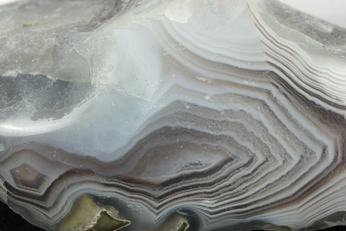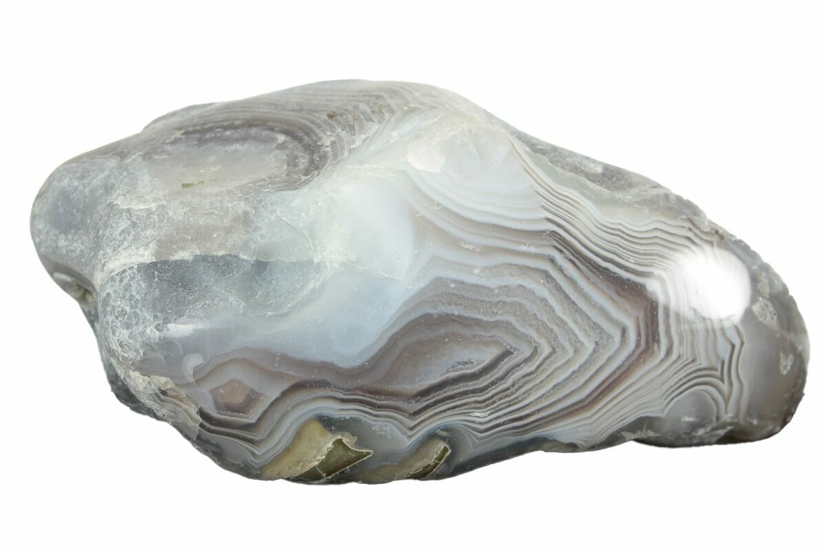 This is a beautiful 2.25" wide banded agate nodule, polished to a mirror finish on one side. These agate nodules are collected from the Bobonong District of Botswana, Africa. These agates feature gorgeous parallel banding in a variety of color hues including white, blue, grey, purple, pink and red.