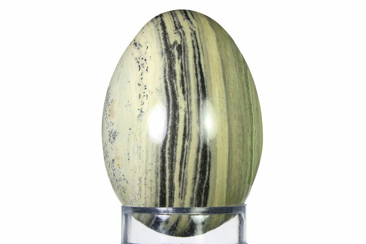 This is a 2.25" tall polished egg made from serpentine stone mined in Arizona. The stone has been nicely shaped and polished to create this unique piece.