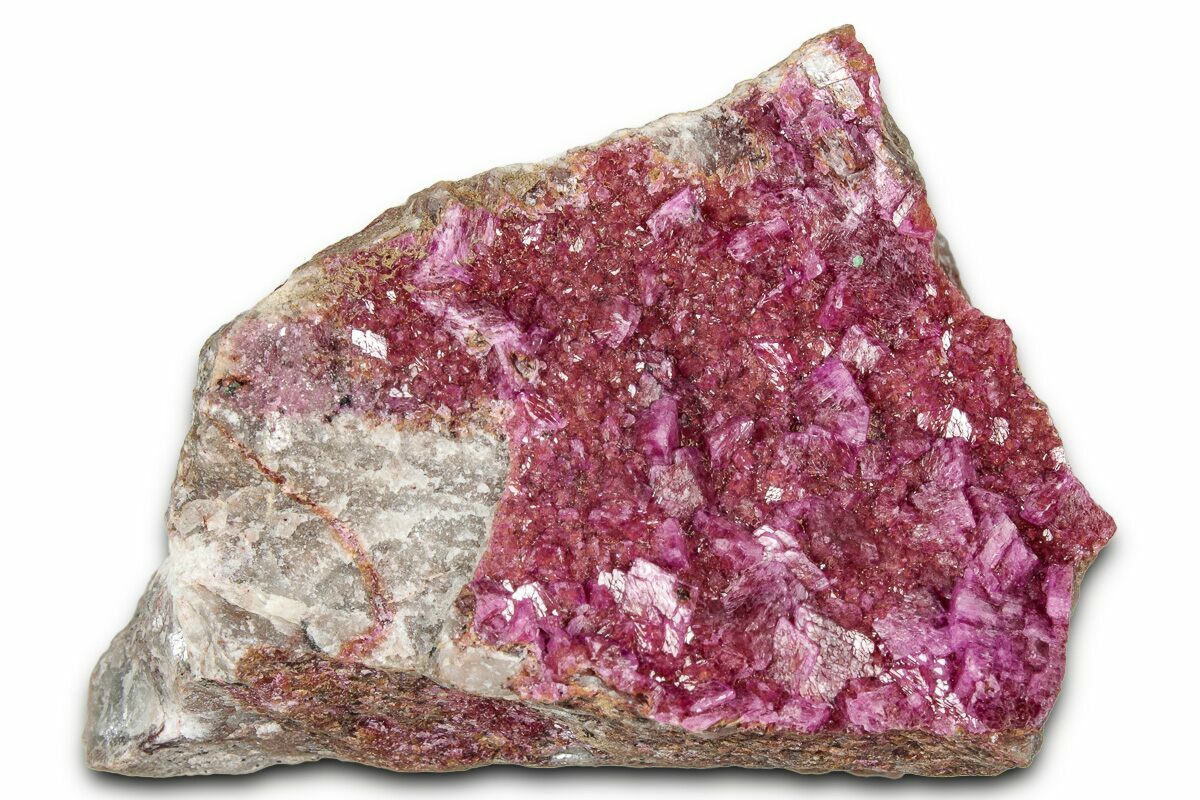 Cobaltoan dolomite is a vibrant, pink to purplish-pink variety of the mineral dolomite that owes its striking coloration to traces of cobalt. This rare and visually distinctive mineral is typically found as crystalline coatings or rhombohedral crystals on matrix, often associated with cobalt-bearing minerals such as erythrite. The vivid hue and lustrous crystal surfaces make cobaltoan dolomite a favorite among mineral collectors. It is most famously sourced from the Katanga region in the Democratic Republic of the Congo, where some of the world’s finest specimens have been found. Though chemically similar to regular dolomite (CaMg(CO₃)₂), the substitution of cobalt in place of magnesium during formation gives it its unmistakable color.