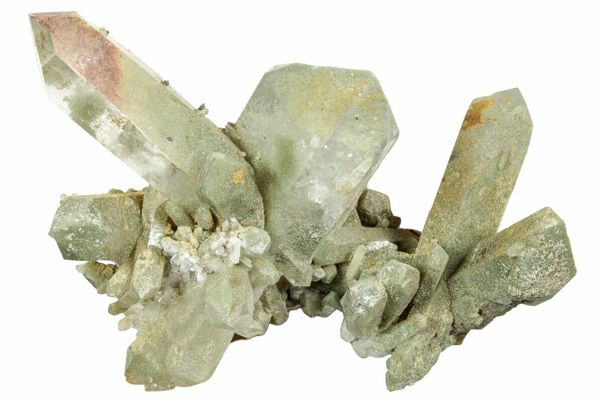 This is a cluster of quartz crystals that was collected from the Balochistan Region of Pakistan. The green color of the quartz can be attributed to chlorite inclusions.