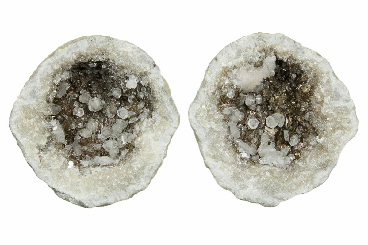 2.3" Keokuk Geode with Calcite Crystals (Pair) - Missouri