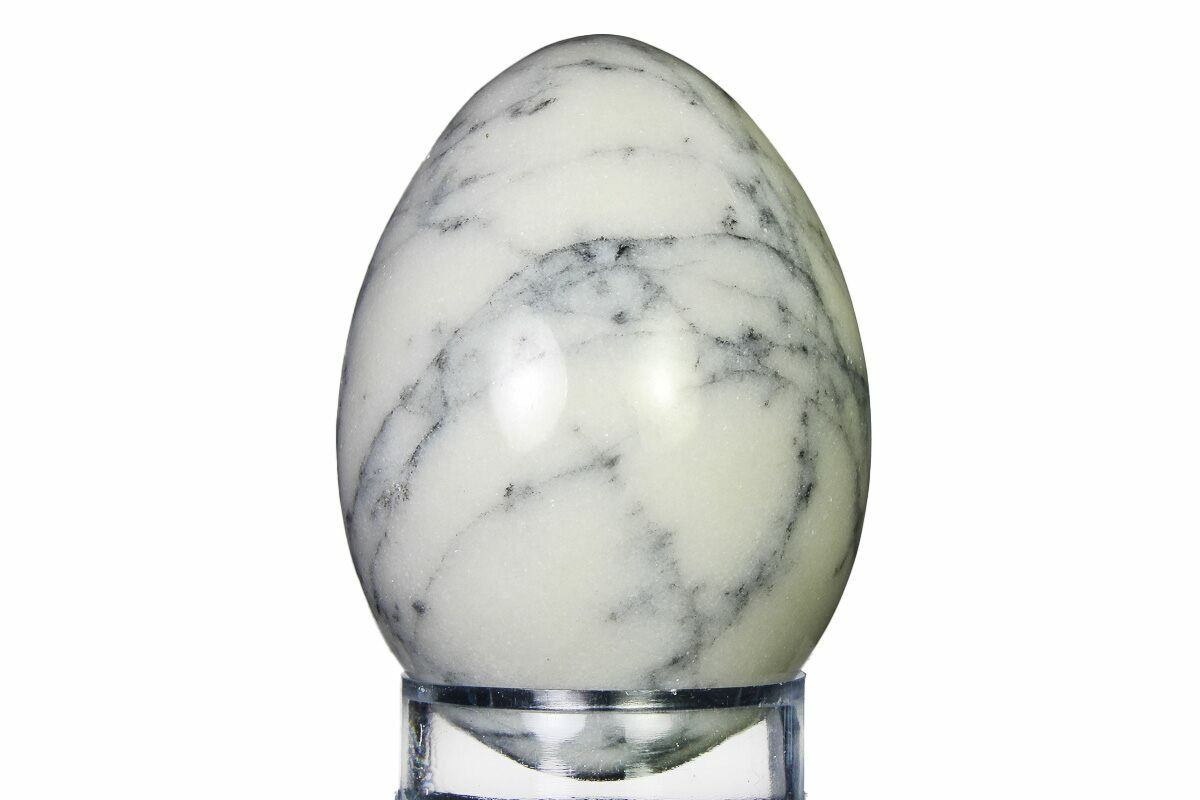This is a gorgeous, 2.3" tall polished egg of "gray marble" mined in the Philippines. The flawless polish really brings out the natural black fractures within the white marble.