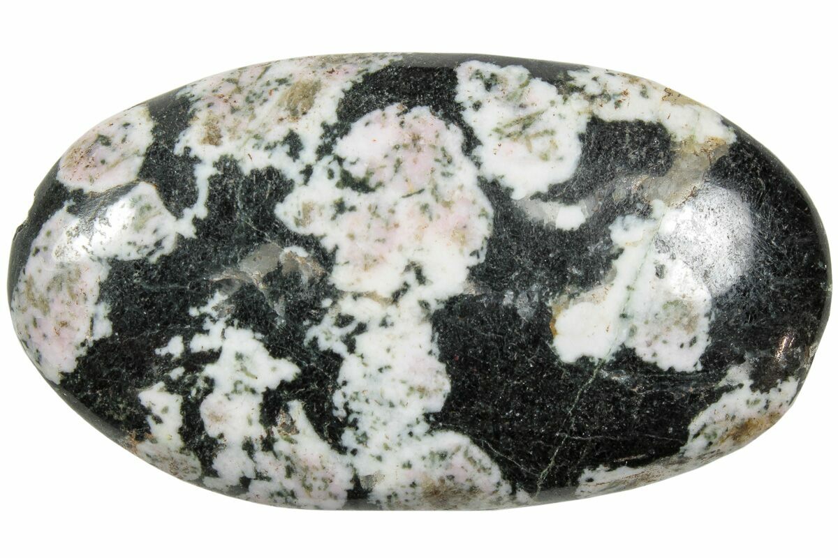 This is a 2.3" wide polished palm stone made from Pakistan snowflake stone