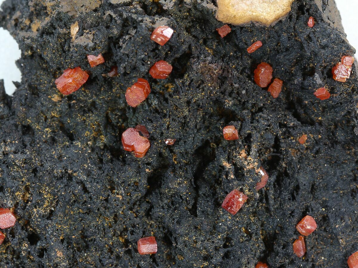 Ruby Red Vanadinite Crystals on Manganese Oxide - Morocco