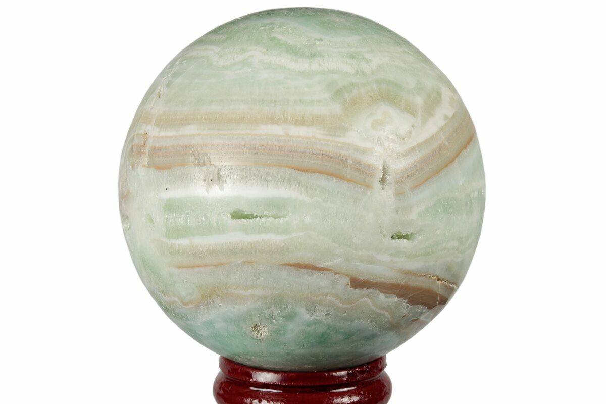 This is a 2.35" wide sphere made from blue Caribbean calcite that was collected from the Balochistan Province along the border of Pakistan and Afghanistan. The entire sphere has been polished to a glossy finish and includes the pictured display stand.
