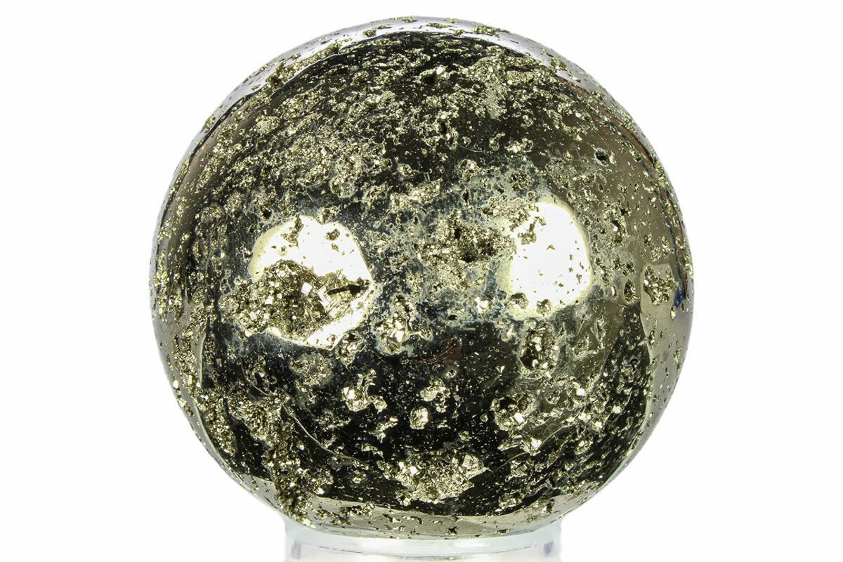 This is a chunk of pyrite (fool's gold) from the mines of Peru which has been cut and polished into a sphere. The cavities within the sphere are full of small pyrite crystals. A breathtaking specimen!