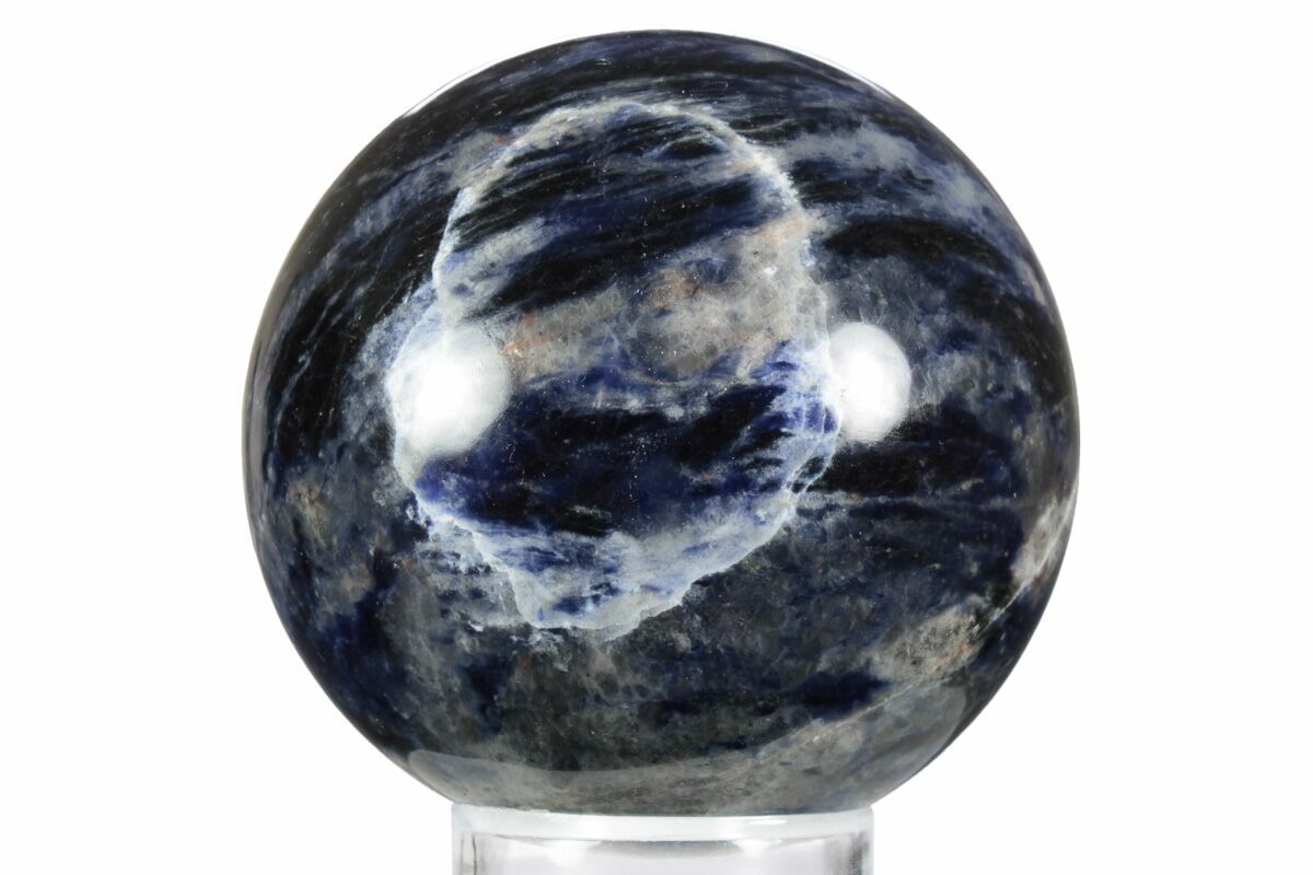 This is a 2.4" wide, polished sphere of sodalite from Namibia. It comes with an acrylic ring stand for display.