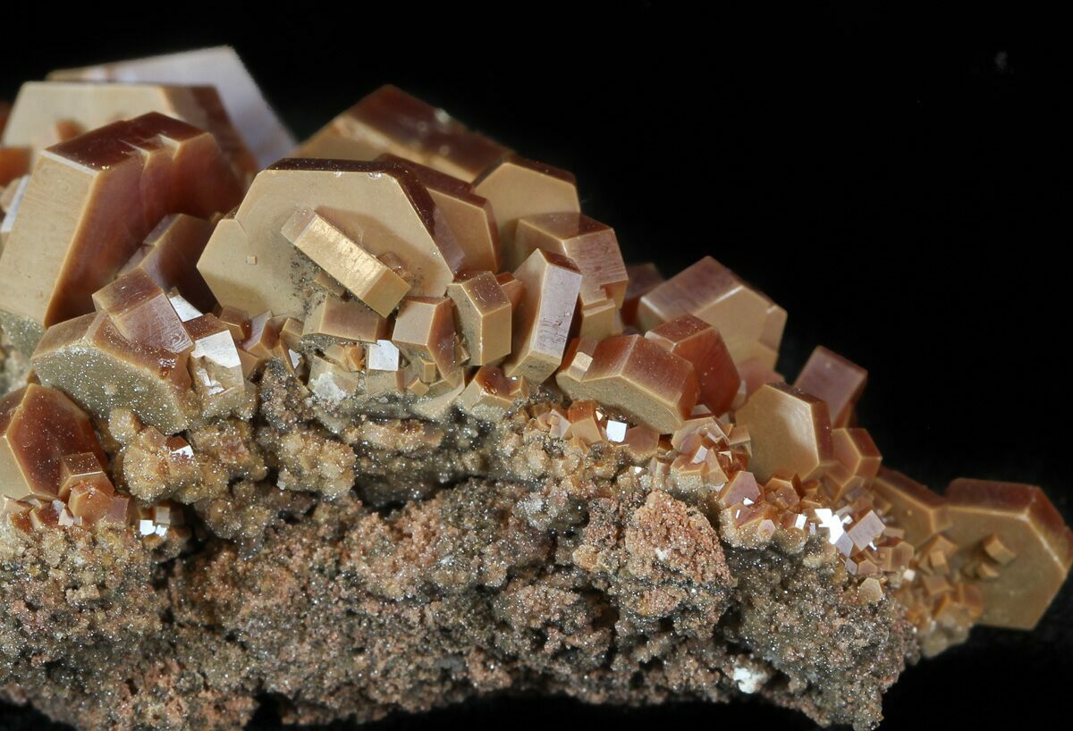 Vanadinite from Morocco is world-famous for producing some of the finest red crystal specimens on the planet. In the arid hills surrounding Mibladen and Taouz, vanadinite forms as vibrant clusters of hexagonal prisms, often with a deep crimson to orange-red color that seems to glow against the pale desert matrix. These crystals typically develop in dense groups, coating barite blades or covering weathered limestone with dazzling, glassy faces and sharp geometric symmetry. The dryness of the region and the slow oxidation of ancient lead deposits create the perfect geochemical environment for vanadinite to grow with exceptional clarity, luster, and intensity of color. Moroccan vanadinite is highly prized by collectors for its bold aesthetics, architectural crystal formations, and the consistent quality that has made these localities the global benchmark for the species.