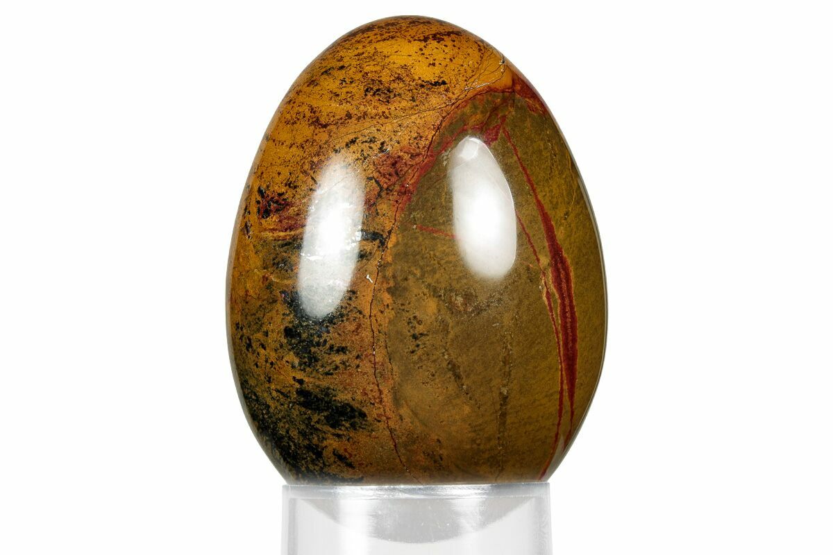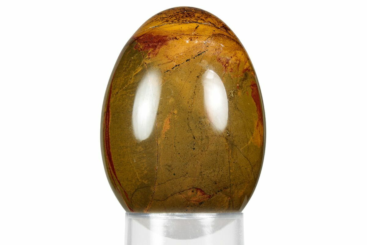 This is a 2.4" tall polished egg of Marra Mamba jasper (packsaddle jasper) from Mt. Brockman in Western Australia. This specimen is just about 2.7 billion years old! It has been polished to a glossy finish all the way around. Comes with a round acrylic display stand.