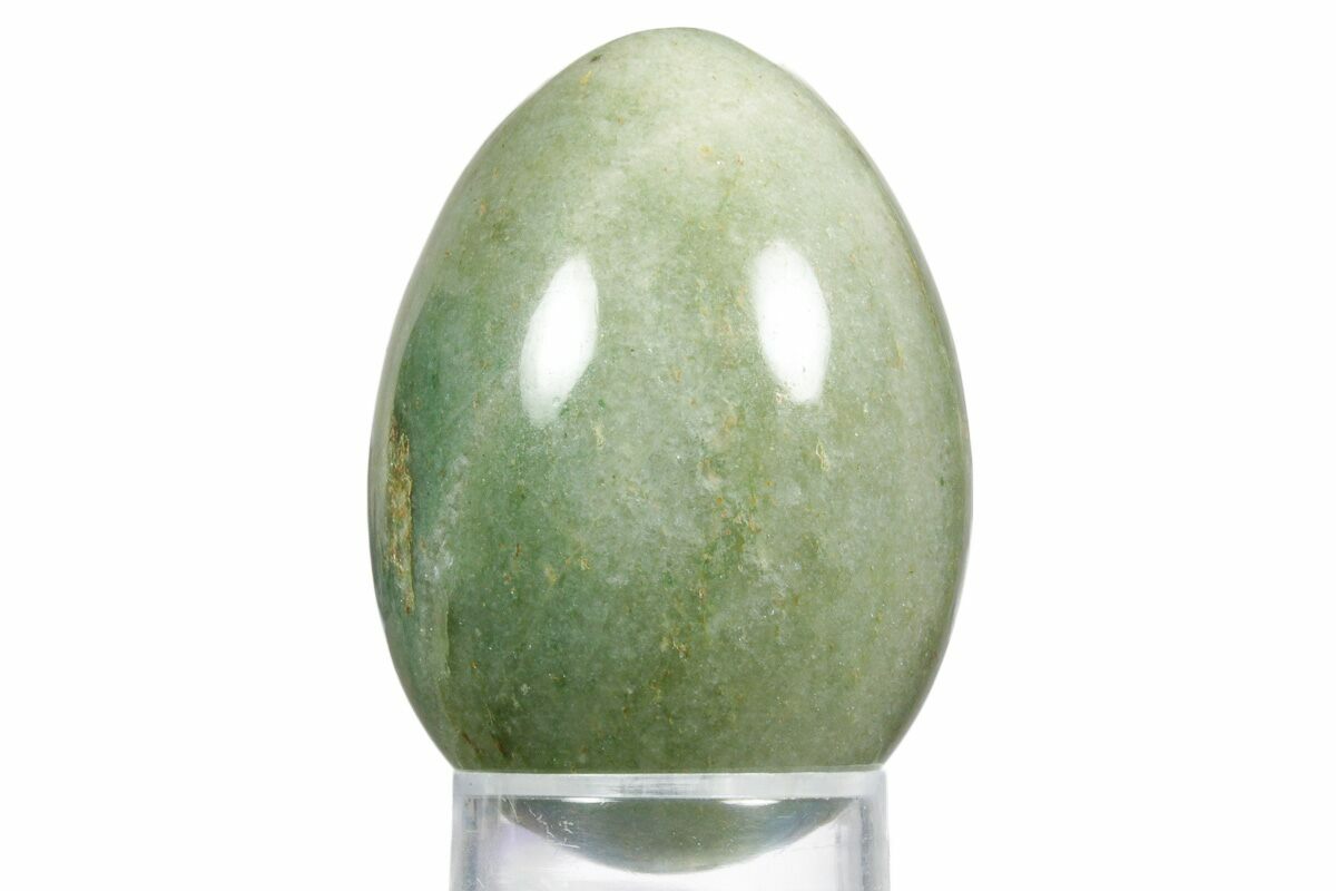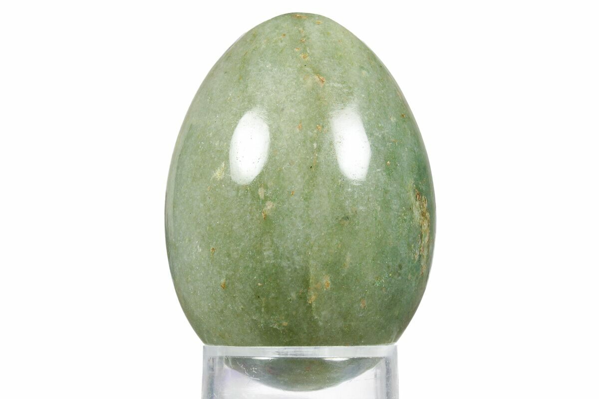 This is a beautiful piece of green aventurine from India that has been polished into an egg shape. This egg measures 2.4 inches tall and its glossy polish allows green inclusions to be seen in great detail.