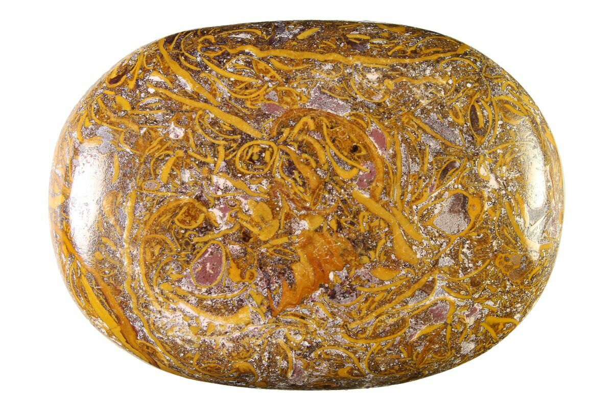 Miriam Jasper is also known by the trade names "Arabic Script Jasper", "Elephant Skin Jasper", "Calligraphy Stone" or "Coquina Jasper". It is a fossiliferous sedimentary rock mined from the Himalayan Mountains in India.