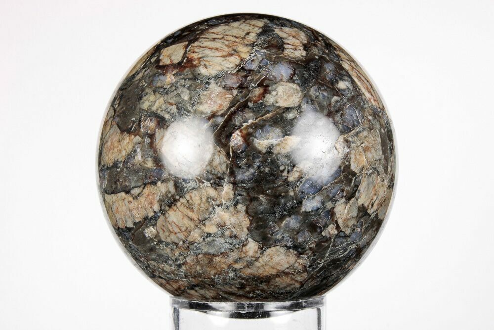This is an absolutely beautiful, polished sphere made out of Que Sera stone from Brazil. It measures 2.4" in diameter and comes with the pictured display stand.