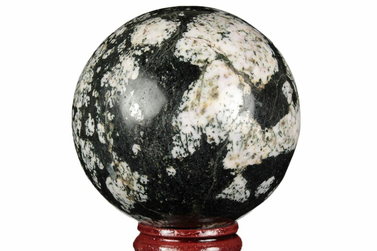 This is a 2.4" wide polished sphere made from Pakistan snowflake stone