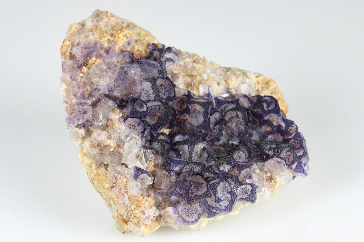 This is a 2.4" wide cluster of purple cubic fluorite crystals that was collected from the Qinglong Mine in the Guizhou Province of China. The fluorite has darker purple coloration and under shortwave UV, fluoresces a faint purple color.