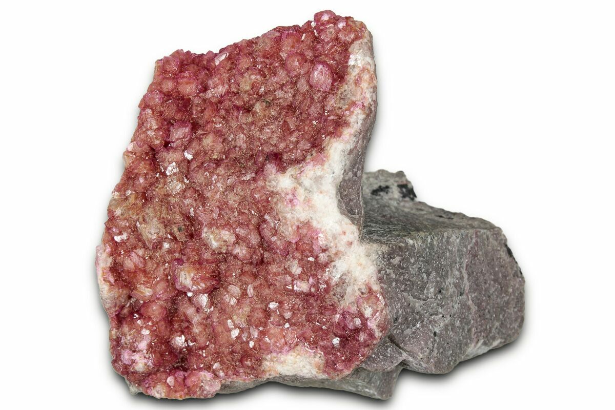 Cobaltoan dolomite is a vibrant, pink to purplish-pink variety of the mineral dolomite that owes its striking coloration to traces of cobalt. This rare and visually distinctive mineral is typically found as crystalline coatings or rhombohedral crystals on matrix, often associated with cobalt-bearing minerals such as erythrite. The vivid hue and lustrous crystal surfaces make cobaltoan dolomite a favorite among mineral collectors. It is most famously sourced from the Katanga region in the Democratic Republic of the Congo, where some of the world’s finest specimens have been found. Though chemically similar to regular dolomite (CaMg(CO₃)₂), the substitution of cobalt in place of magnesium during formation gives it its unmistakable color.