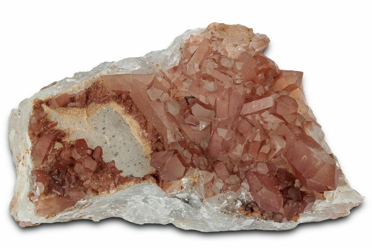 This is a beautiful quartz crystal cluster that's covered in iron oxidation (hematite), collected from Minas Gerais, Brazil. The cluster is natural and has not undergone any heat treatment or polishing.