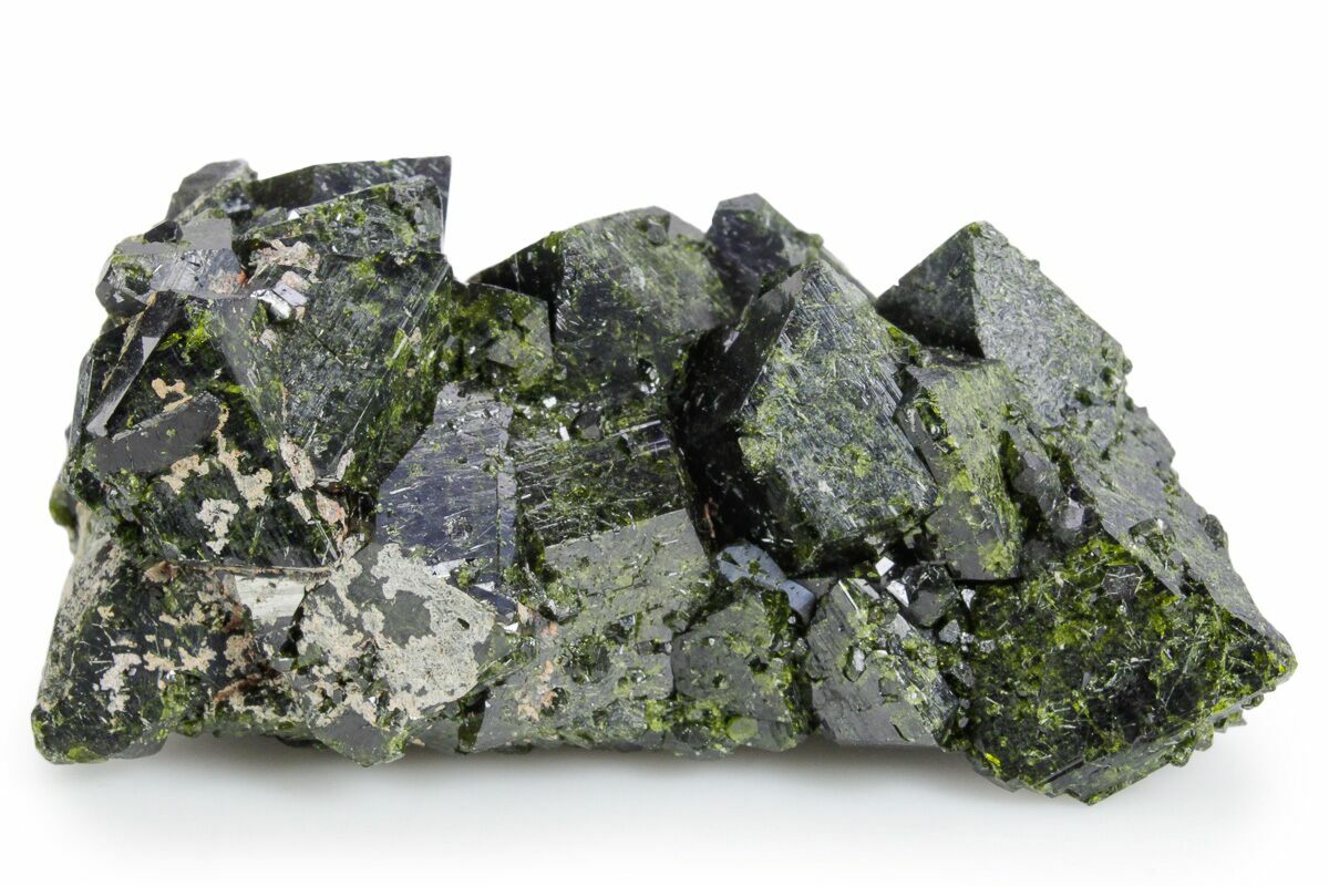This is a beautiful, 2.45" cluster of epidote crystals. This specimen was collected in the Coayllo District in the Cañete Province, Department of Lima, Peru. The crystals have great luster and sharp, chisel-shaped terminations.
