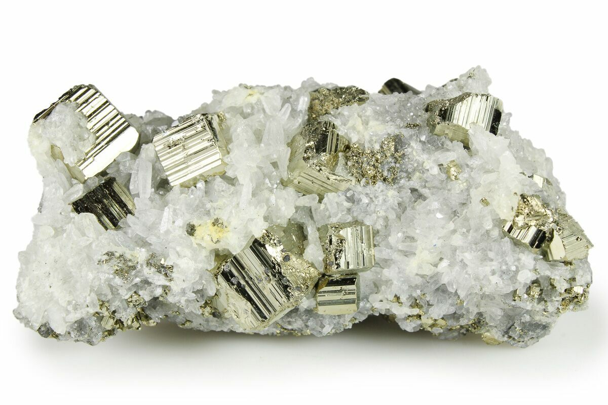 2.45" Lustrous Striated Pyrite with Quartz - Peru