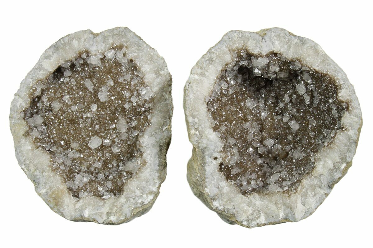 2.5" Keokuk Geode with Calcite Crystals (Pair) - Missouri