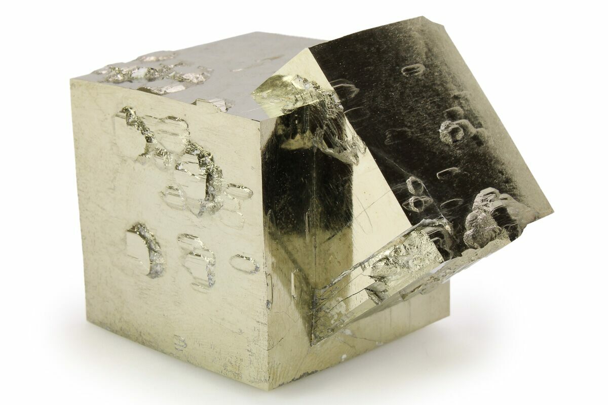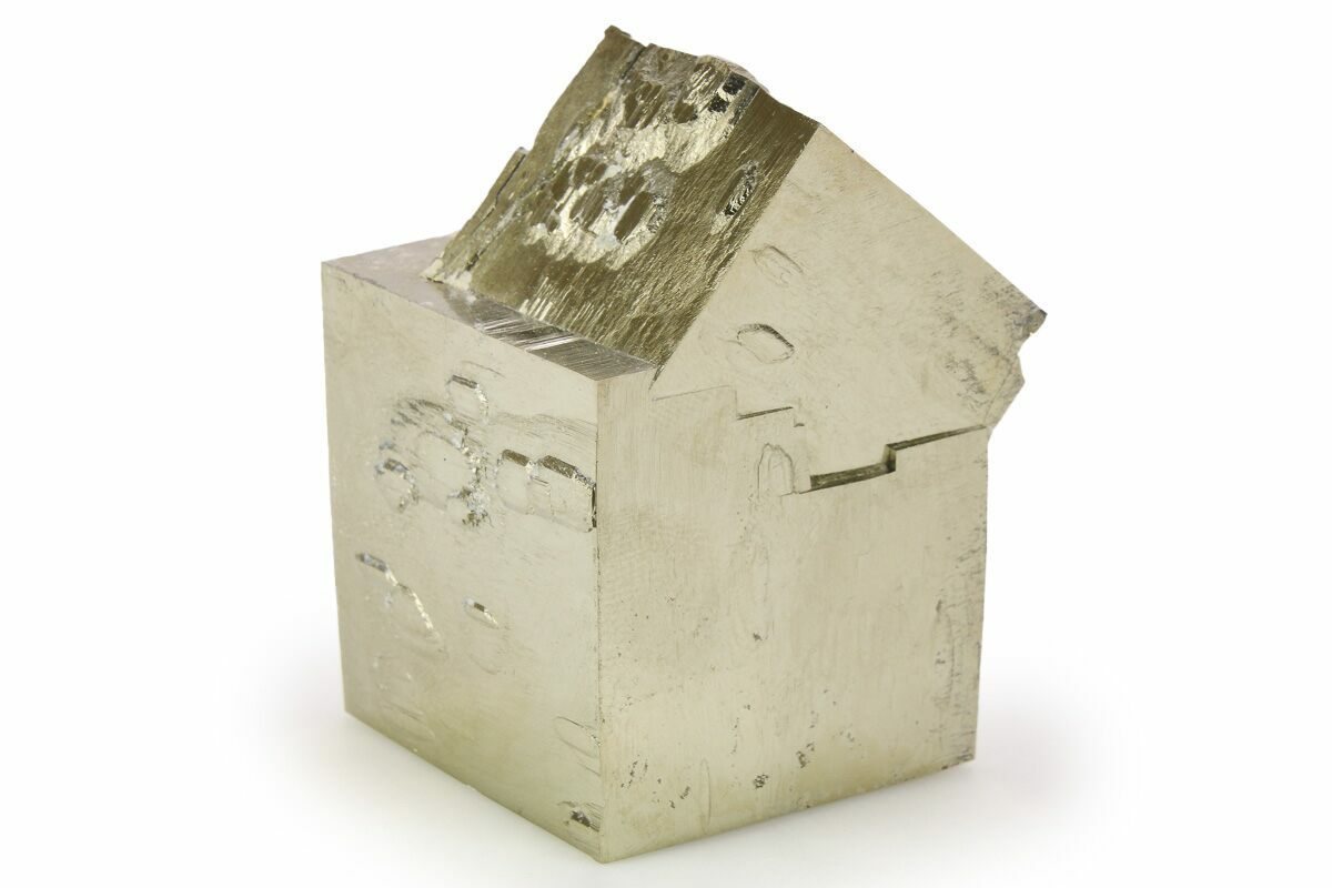 At first glance some people assume that these pyrite cubes are man-made, but the amazing thing is that they are natural! Pyrite from this location is famous for its beautiful shine, near-perfect cubic formation, and sculptural appearance. Because the matrix rock is soft, the cubes often come loose during collection. Care is taken during preparation to stabilize, repair, and make sure everything is remounted in its natural position: no specimens are composites. This means that nearly all of the pyrite cubes still in the rock from this locality have been remounted, and most clusters of multiple cubes have been stabilized.