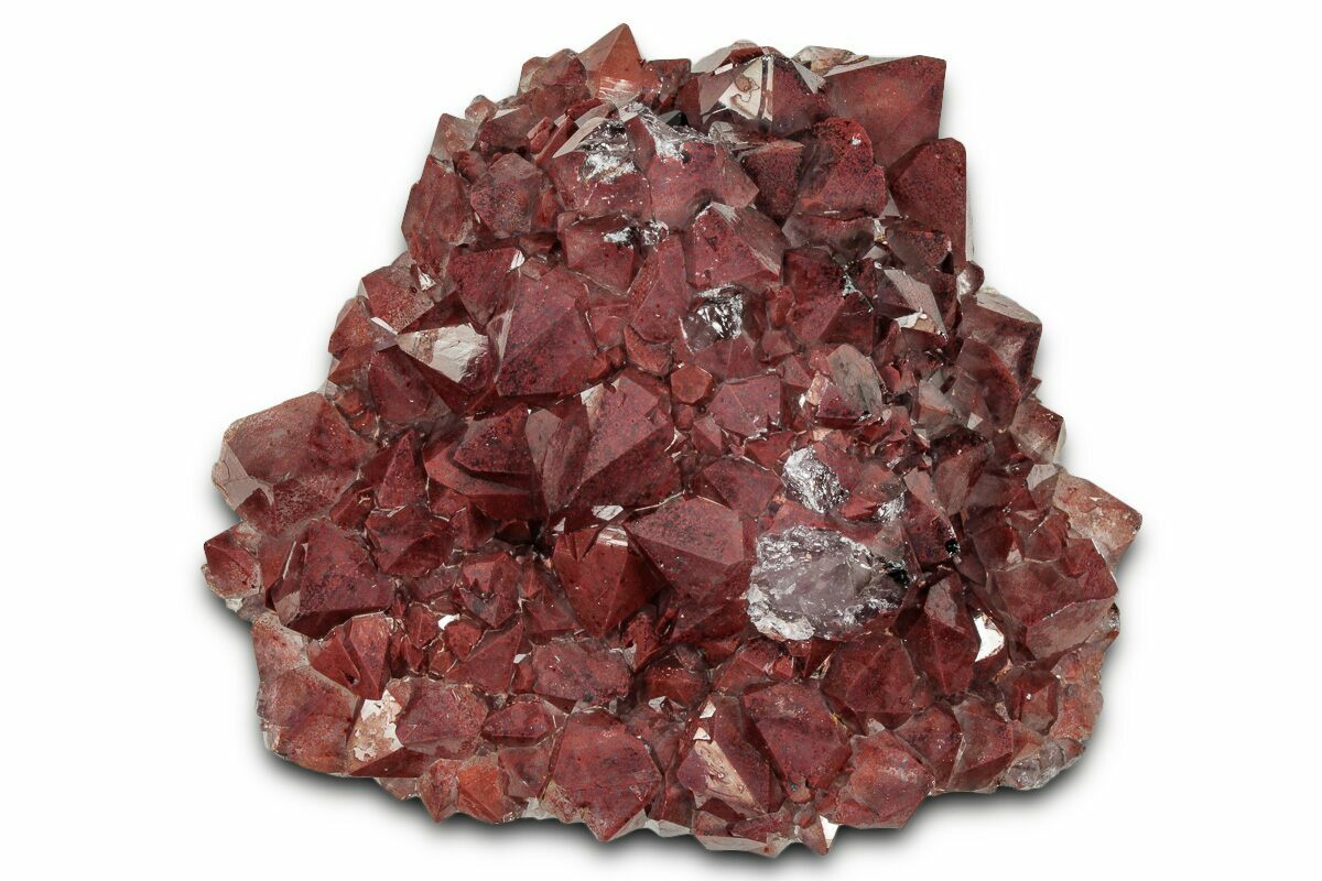 Thunder Bay amethyst is known for its impressive color range, spanning from soft, lavender hues to deep, nearly black tones referred to as “black amethyst.” What sets this locality apart, however, is its distinctive red hematite inclusions. These appear as microscopic disks, spherules, or dust-like clouds suspended within the quartz, creating brilliant flashes of red and orange when the crystals catch the light. In some specimens, the hematite is so pervasive that whole sections—and occasionally entire crystals—take on a warm reddish glow. This combination of rich purple quartz and iron-derived coloration gives Thunder Bay amethyst its unmistakable and highly sought-after appearance.