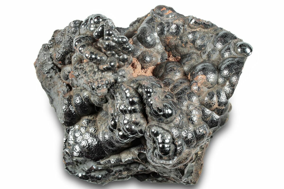 This is a shiny, metallic specimen of kidney ore (botryoidal hematite) from the Safi Province of Morocco.