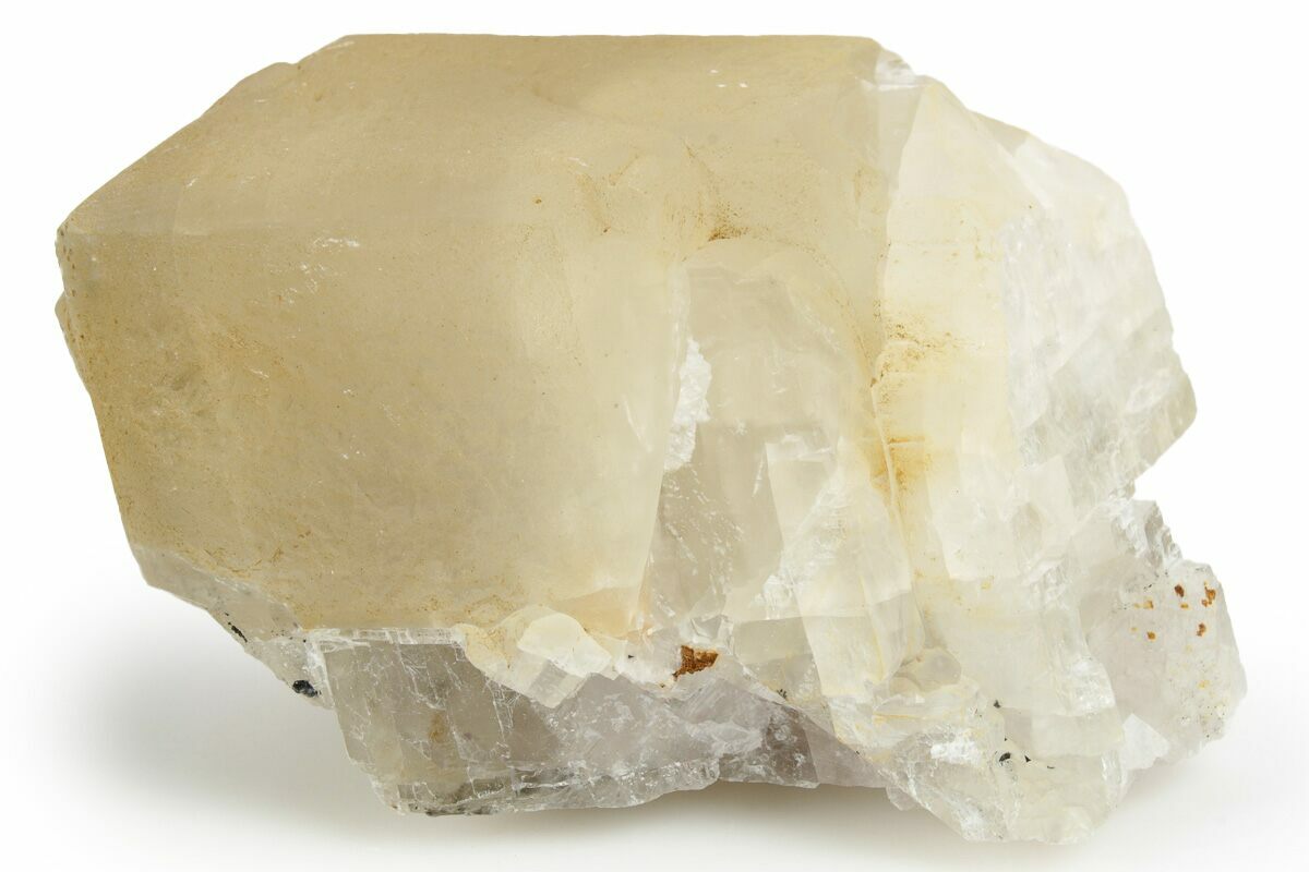 Calcite crystals are a form of calcium carbonate (CaCO₃) known for their diverse shapes, transparency, and vibrant range of colors. They typically form in rhombohedral, scalenohedral, or prismatic shapes, often with well-defined, sharp edges and glossy surfaces. Calcite crystals are often translucent or transparent, sometimes displaying a double refraction effect where objects viewed through the crystal appear doubled. They can appear in various colors—white, clear, yellow, pink, blue, green, and orange—depending on impurities or trace minerals.