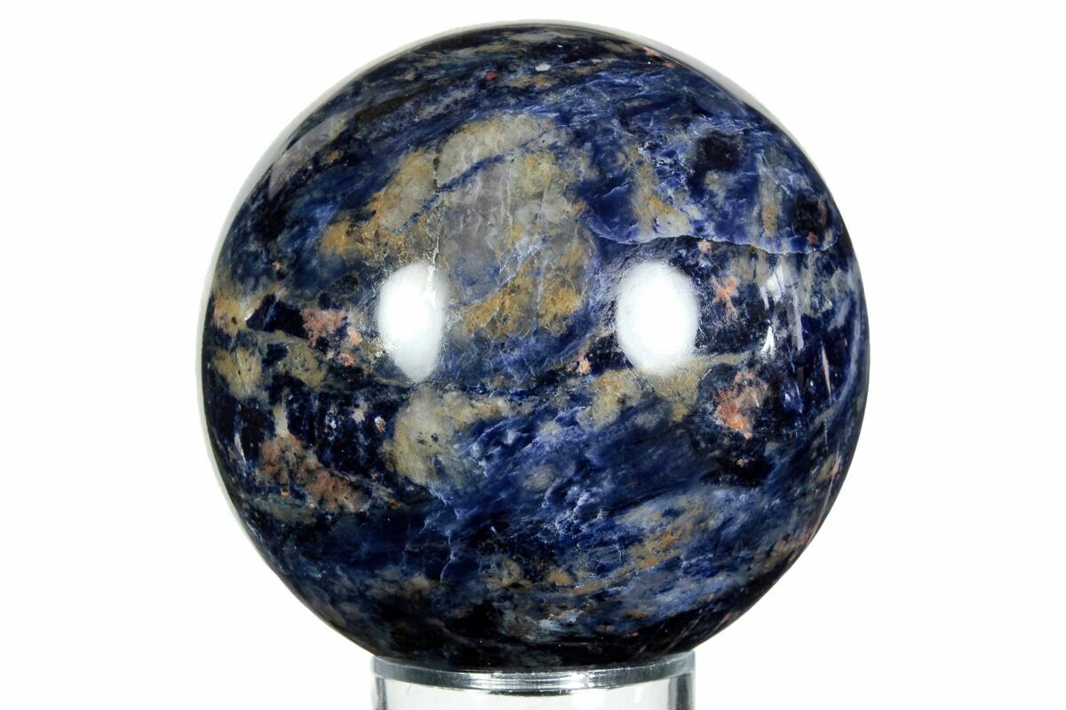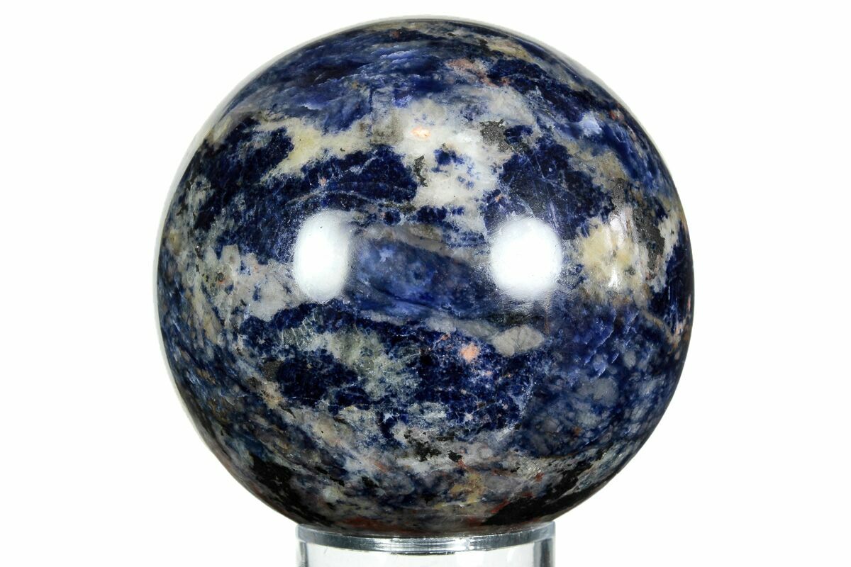 This is a 2.6" wide, polished sphere of sodalite from Namibia. It comes with an acrylic ring stand for display.