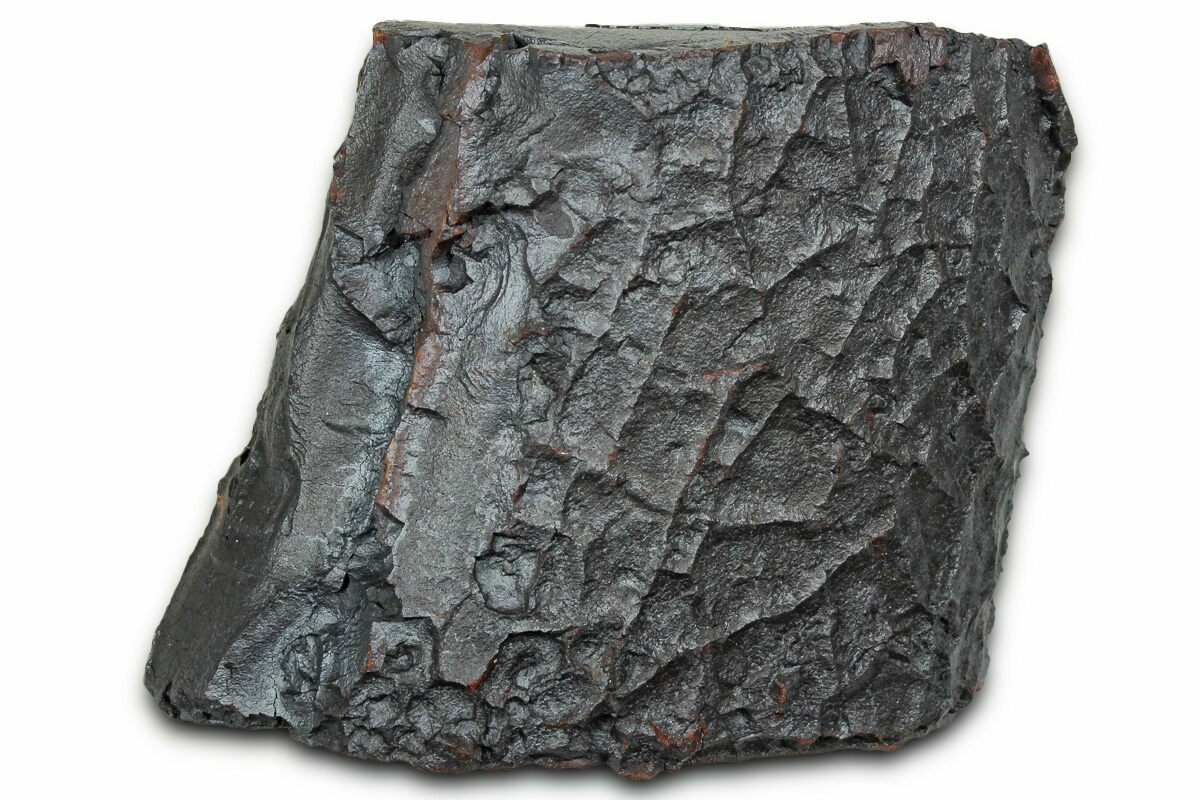 Dragon scale stone is the trade name of this type of iron nodule found in the Hell Creek Formation of North Dakota. They are found alongside dinosaur bones throughout the Hell Creek deposits, often lying next to dinosaur remains. Despite their name, these stones have nothing to do with dragons aside from their unique polygonal patterning, reminiscent of dragon scales. Their composition is primarily iron oxide with a siderite core and manganese/iron oxides that give them their dark red-brown patina.