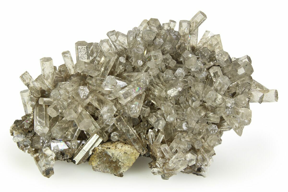 This is a stunning, 2.6" wide cluster of transparent, hexagonal, columnar calcite crystals collected from the Xia Yang Mine in Fujian, China.