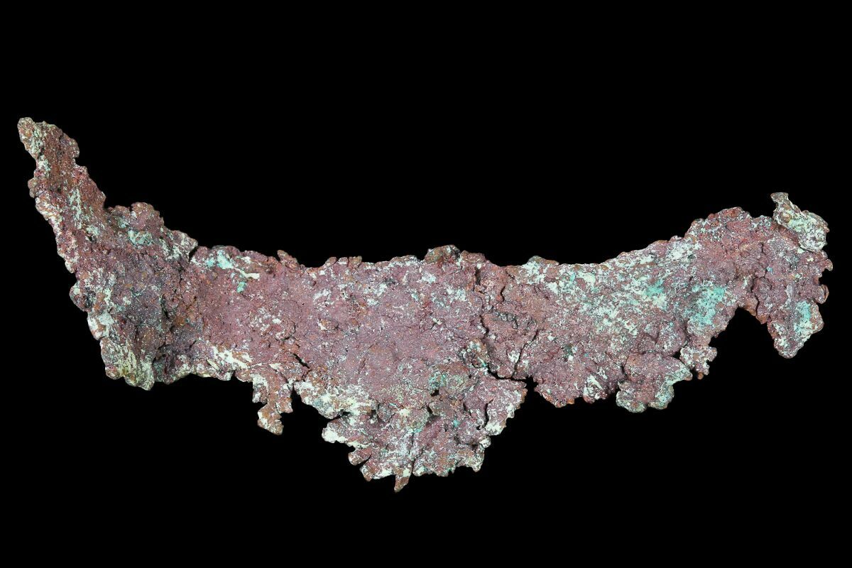 This is a natural formation of native copper with cuprite, mined from the Carissa Pit in the Battle Mountain Mining District of Nevada. It has a green and brown patina and has been prepped free from the matrix it was found in.