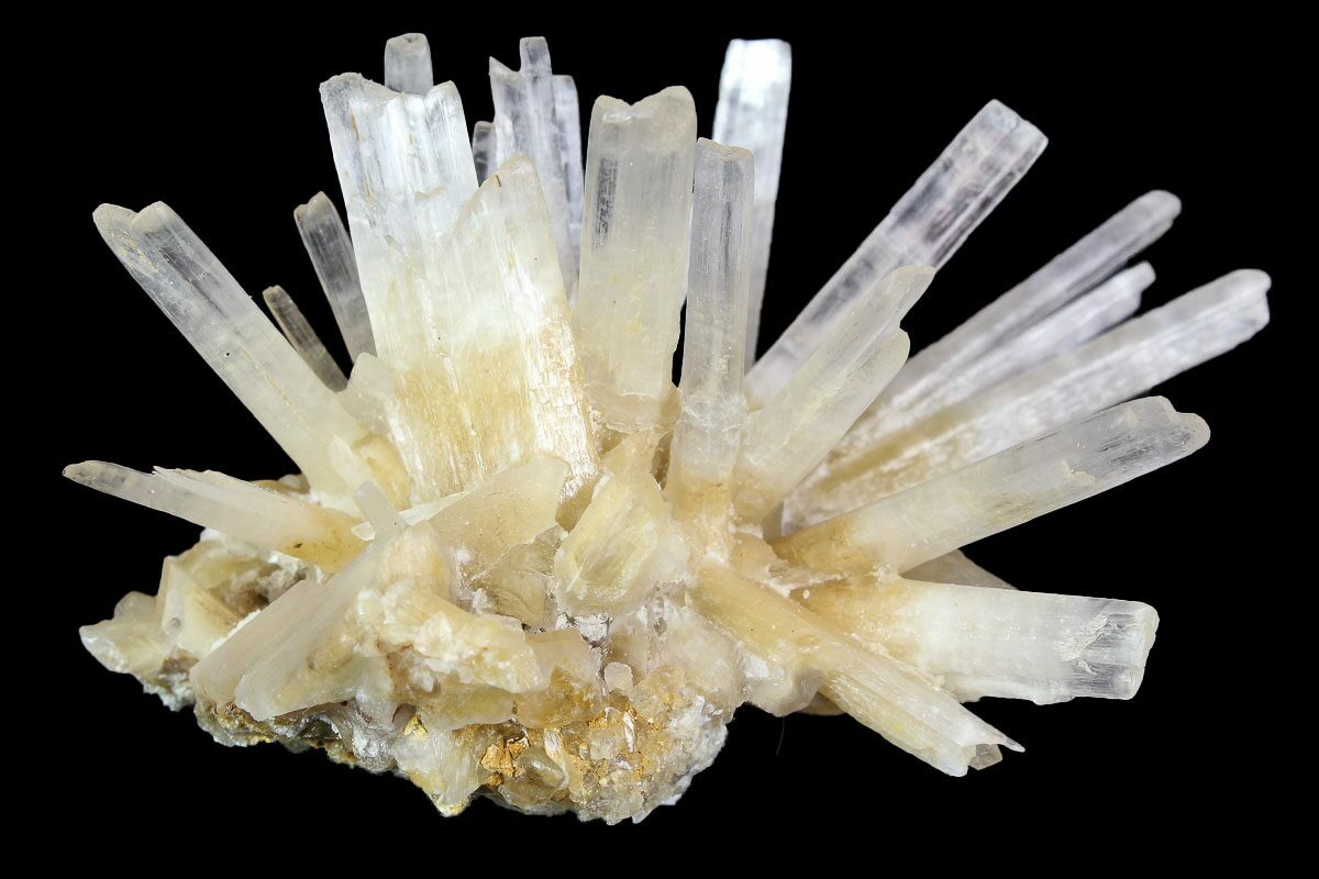 Selenite is a variety of gypsum, a soft sulfate mineral that is composed of calcium sulfate dihydrate (CaSO4 · H2O). When chemically pure, gypsum is transparent and colorless, however, impurities give the gypsum a diverse range of colors and formations. Desert rose, selenite and satin spar are just a few of the varieties of gypsum known to have formed though hydrothermal processes.