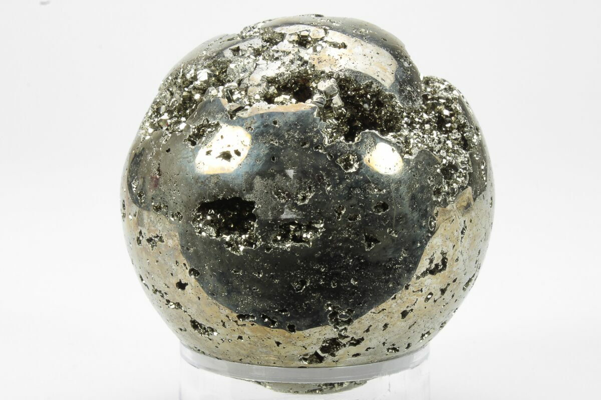 This is a chunk of pyrite (fool's gold) from the mines of Peru which has been cut and polished into a sphere. The cavities within the sphere are full of small pyrite crystals. A really cool piece.