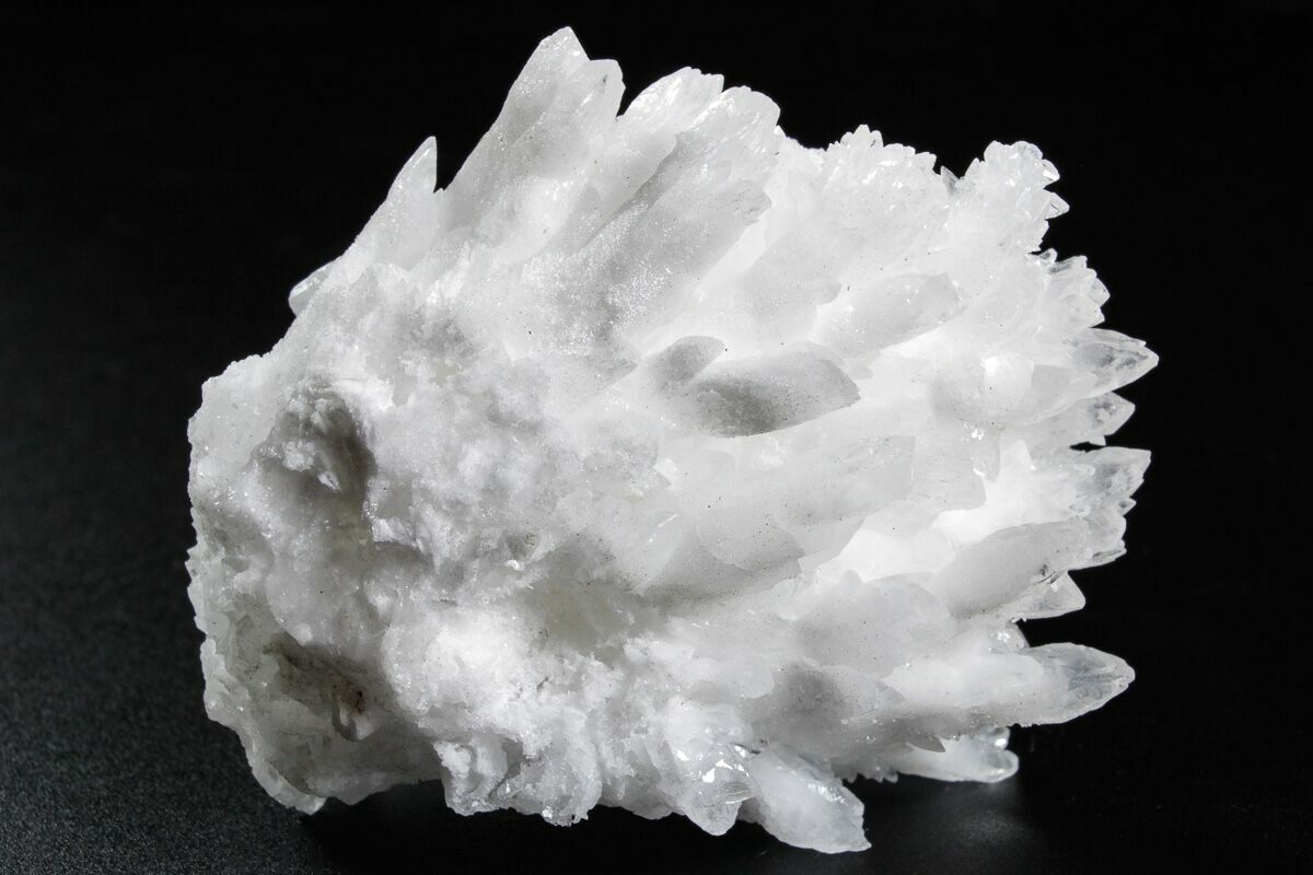 Cave calcite forms underground due to groundwater deposition. While it often forms stalactites and stalagmites on cave ceilings and floors, it can also form as unique, branching, tree-like structures. These beautiful formations are sometimes known as ‘floss ferri’ (flowers of iron) and frostwork.