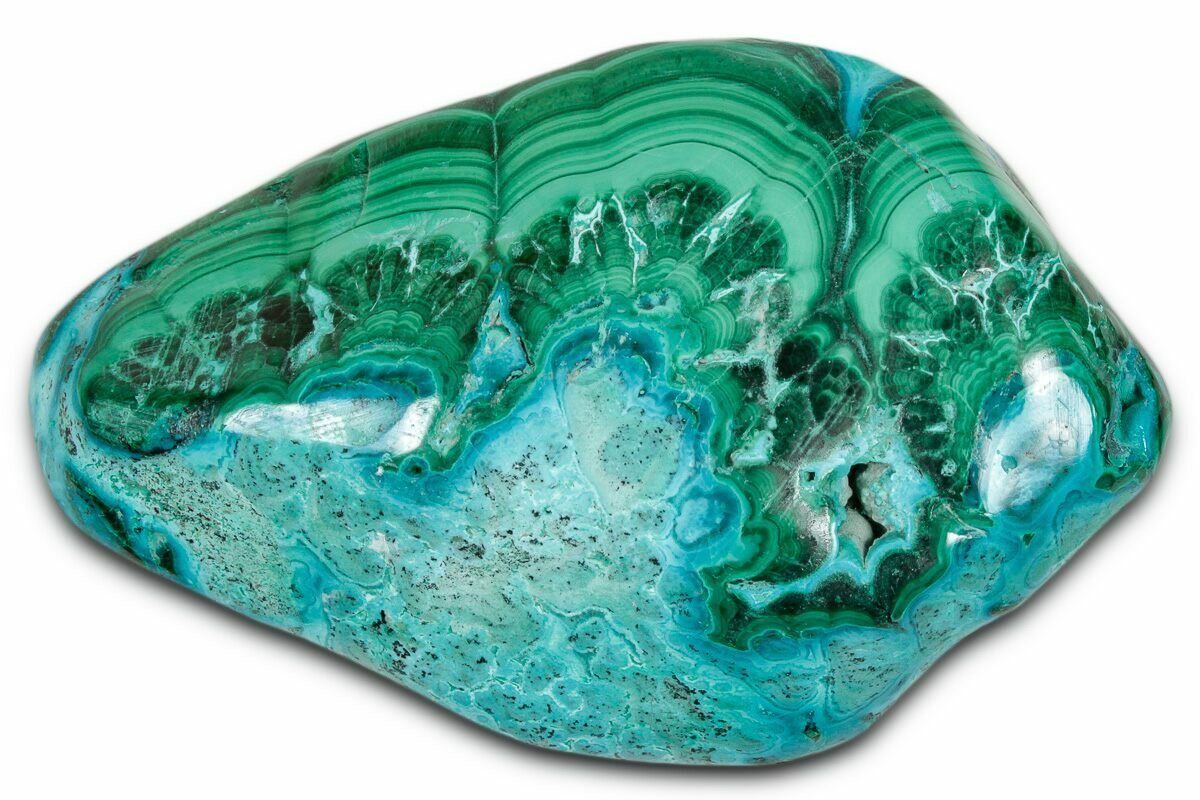 Malachite results from the weathering of other copper ores, and is very often found associated with other copper-based minerals such as azurite and chrysocolla. It can be found in copper deposits around the world, but the Democratic Republic of the Congo is the primary source for polished malachite and mineral specimens.