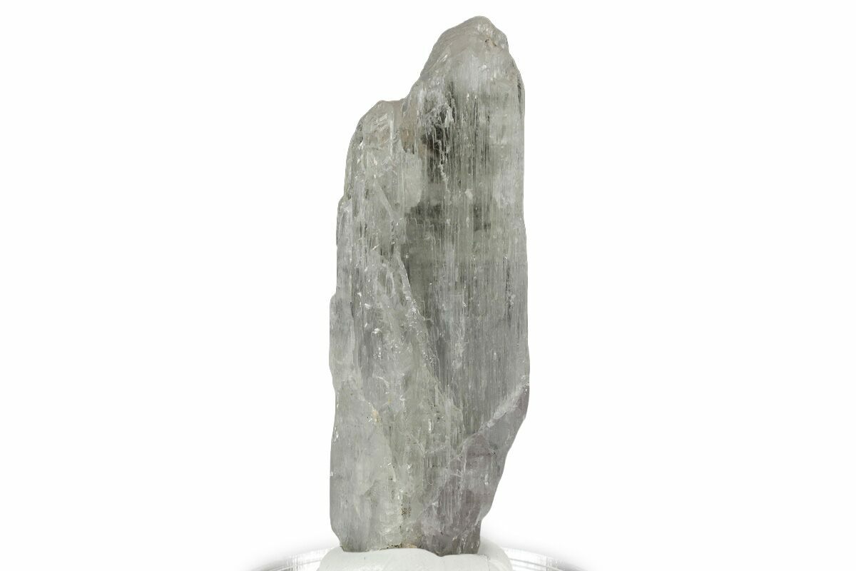 This is a beautiful, 2.65" long almost colorless spodumene (kunzite variety) crystal that was collected from the Dara-e-Pech pegmatite field in the Kunar Province of Afghanistan. It has been mounted to an acrylic display base with mineral tack.