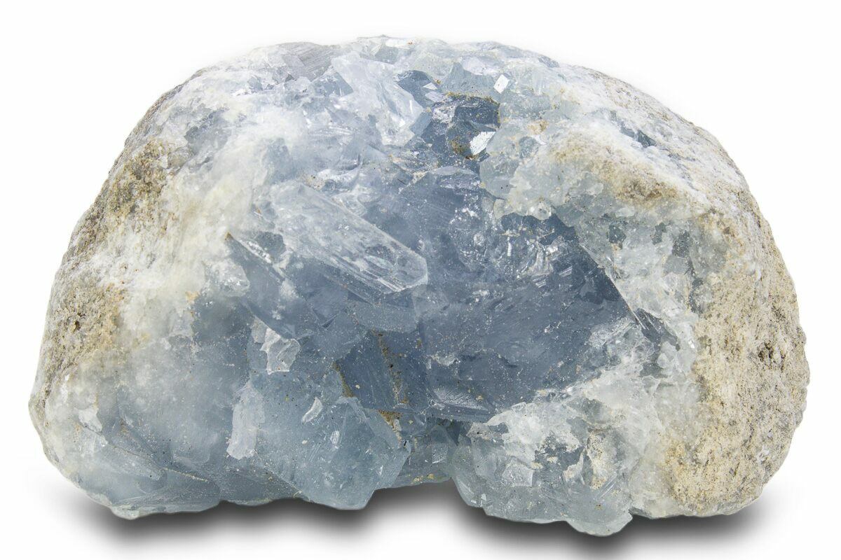 Celestite (or celestine) is a mineral consisting of strontium sulfate (SrSO4). It tends to form attractive, well-shaped crystals that are often found inside of geodes. One of the main sources of celestine is the deposits on the northwestern coast of Madagascar.