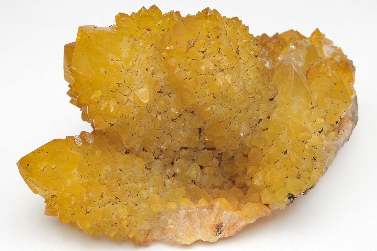 This is a beautiful orange cactus quartz cluster from the Boekenhoutshoek area of South Africa. It has a unique orange/yellow coloration due to the presence of iron oxides (limonite).