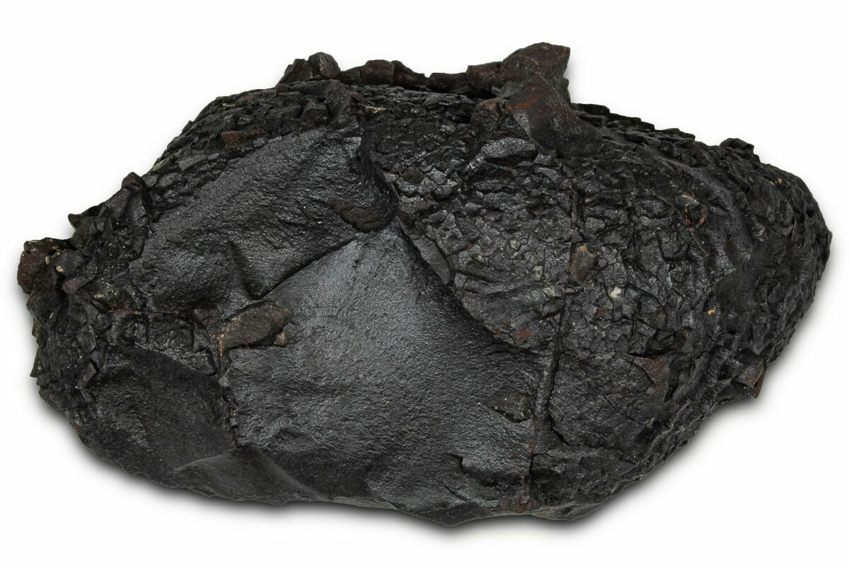 Dragon scale stone is the trade name of this type of iron nodule found in the Hell Creek Formation of North Dakota. They are found alongside dinosaur bones throughout the Hell Creek deposits, often lying next to dinosaur remains. Despite their name, these stones have nothing to do with dragons aside from their unique polygonal patterning, reminiscent of dragon scales. Their composition is primarily iron oxide with a siderite core and manganese/iron oxides that give them their dark red-brown patina.