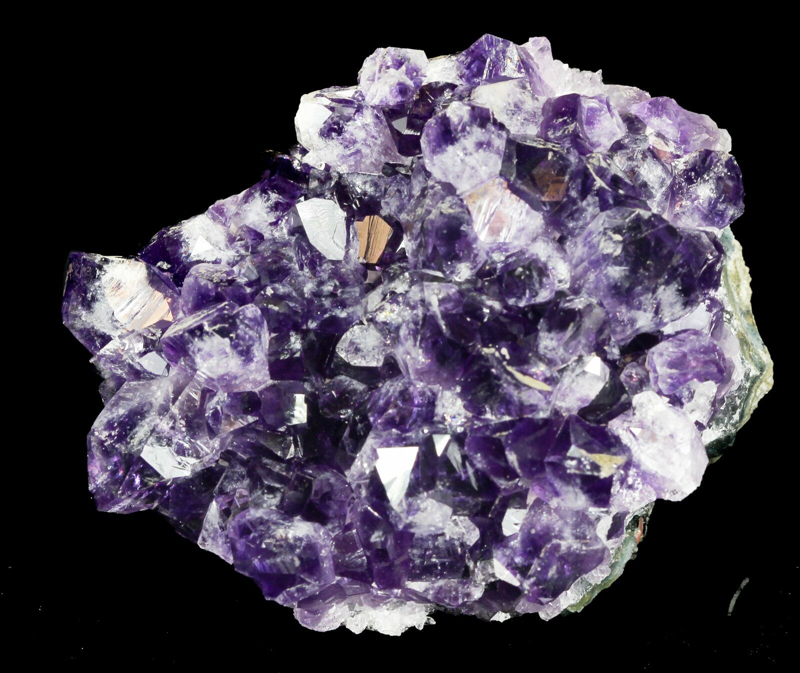 This is a small cluster of druzy Amethyst crystals from the famous mines near Artigas, Uruguay. It contains many small violet colored crystals.