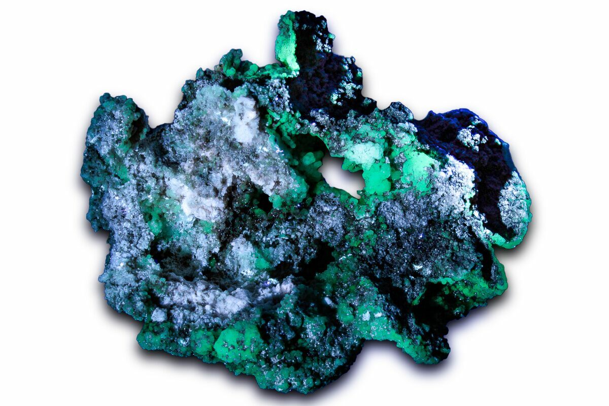 More on Uranyl-activated chalcedony: a form of chalcedony that contains uranium, causing it to fluoresce a brilliant green under short-wave UV light. It is the most common form of uranium found in nature and water.