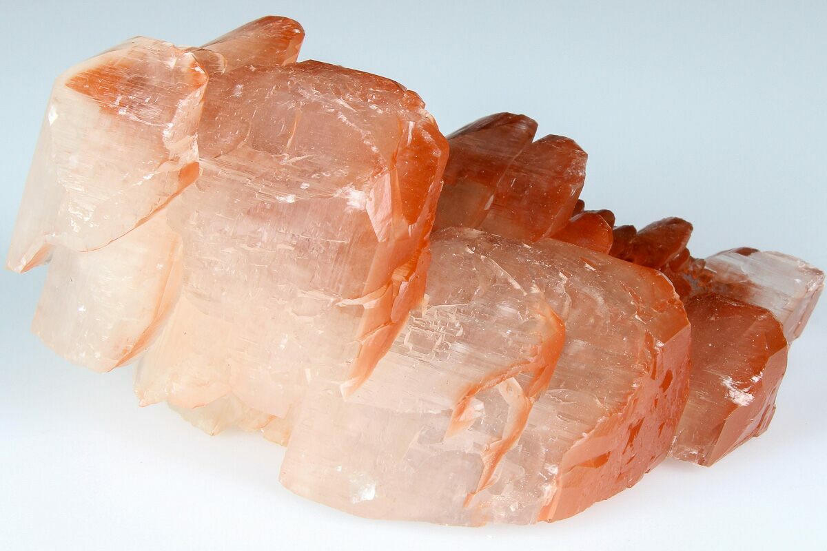 Calcite crystals are a form of calcium carbonate (CaCO₃) known for their diverse shapes, transparency, and vibrant range of colors. They typically form in rhombohedral, scalenohedral, or prismatic shapes, often with well-defined, sharp edges and glossy surfaces. Calcite crystals are often translucent or transparent, sometimes displaying a double refraction effect where objects viewed through the crystal appear doubled. They can appear in various colors—white, clear, yellow, pink, blue, green, and orange—depending on impurities or trace minerals.