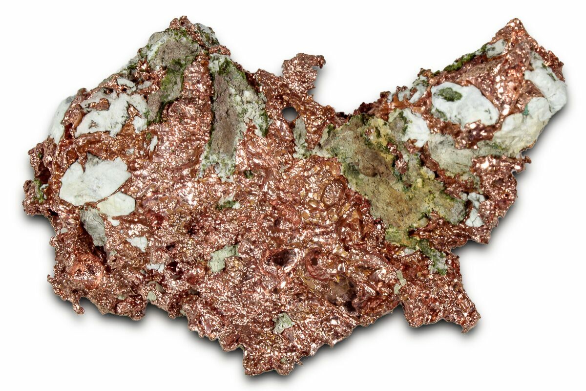 This is a natural formation of native copper mined on the Keweenaw Peninsula of Michigan. This native copper location is considered to be the most important as far as purity of the copper is concerned. Mining began here in 1845, producing copper until around 1982. Over this period of time, over 7 million tons of refined copper were recovered from the Michigan copper mines. By the early 1900's, these mines led the world in copper production, with "Lake Copper" becoming the comparative purity standard for other refined copper.