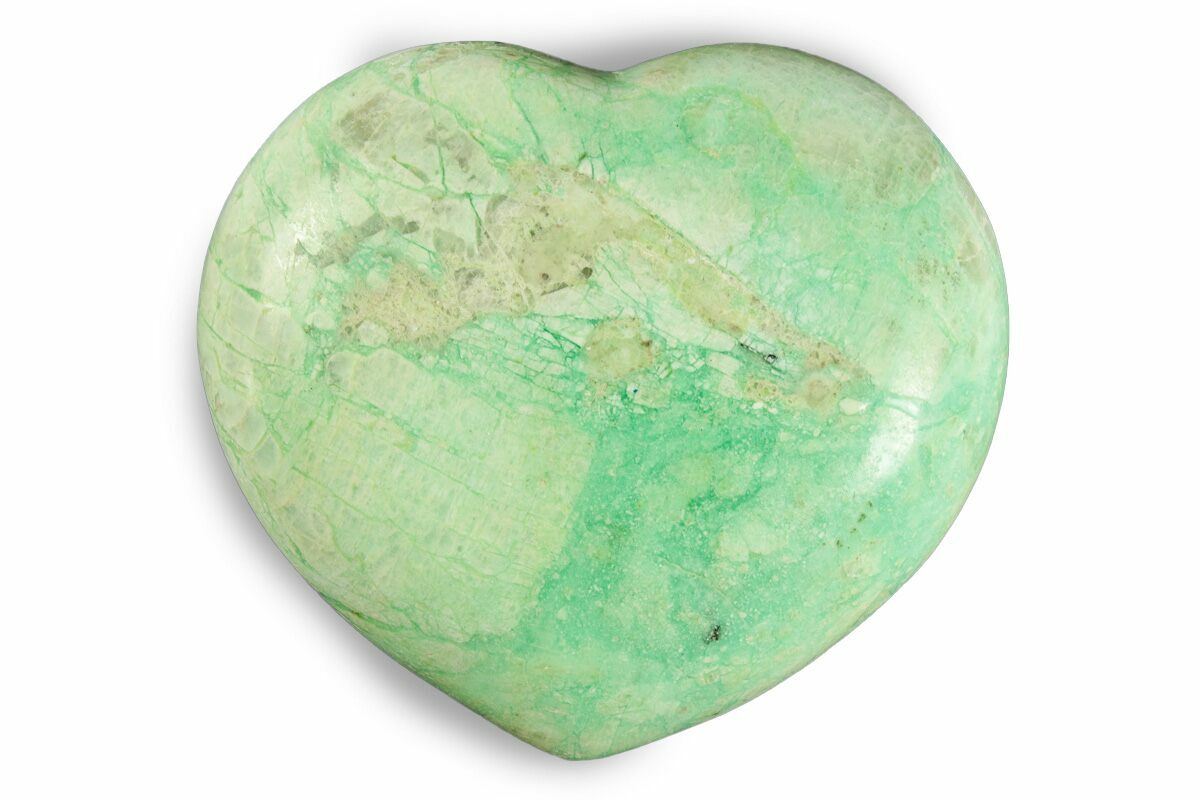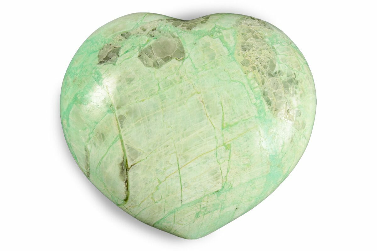 This is a beautiful pale green, 2.9" wide, polished garnierite heart from Madagascar.