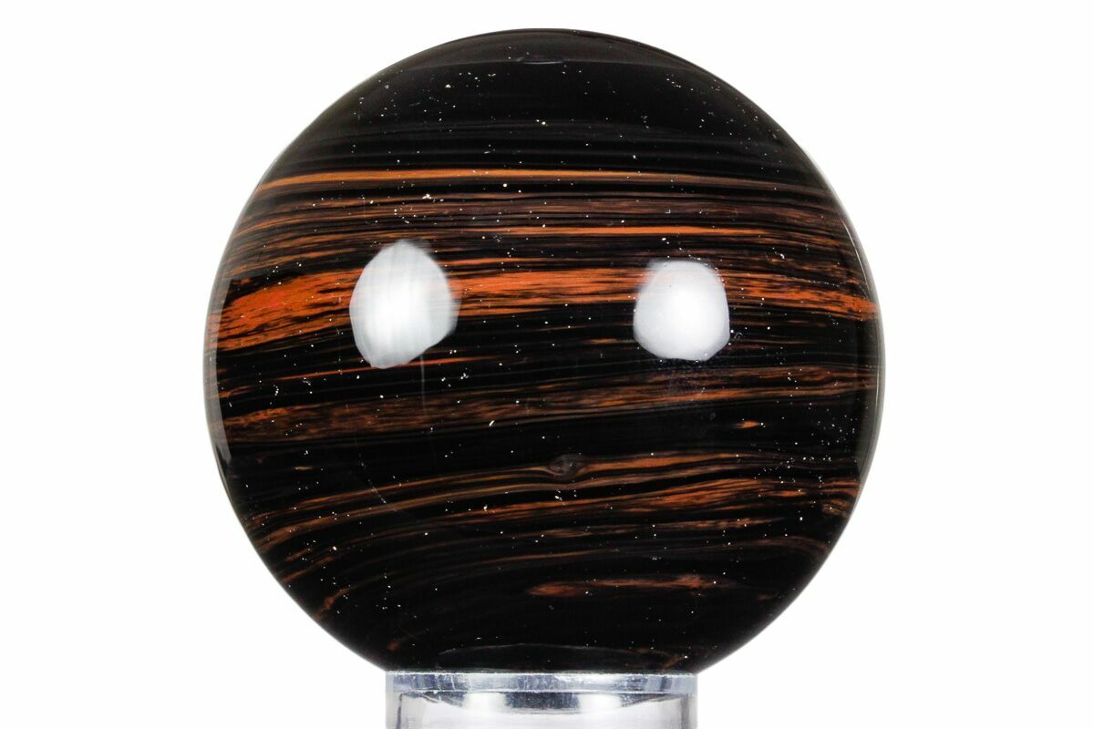 This is a 2.7" wide mahogany obsidian sphere, likely collected from California. This obsidian specimen has been flawlessly polished, revealing the swirls and streaks of red/orange color that give this form of obsidian its name.