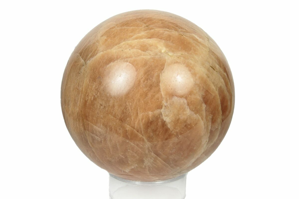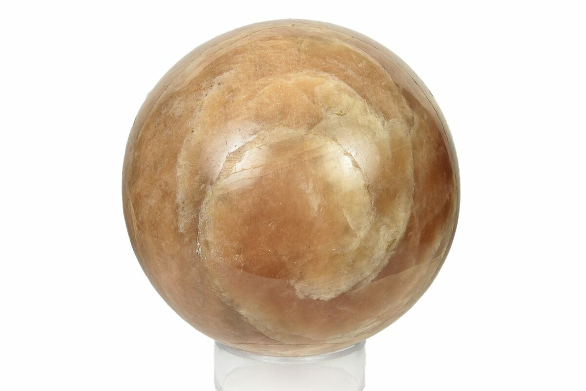 This is a polished sphere made from peach moonstone (potassium aluminum silicate feldspar) that has been shaped and polished into a sphere. An acrylic display stand will accompany the sphere.