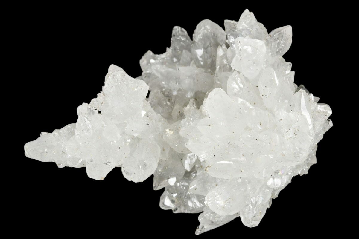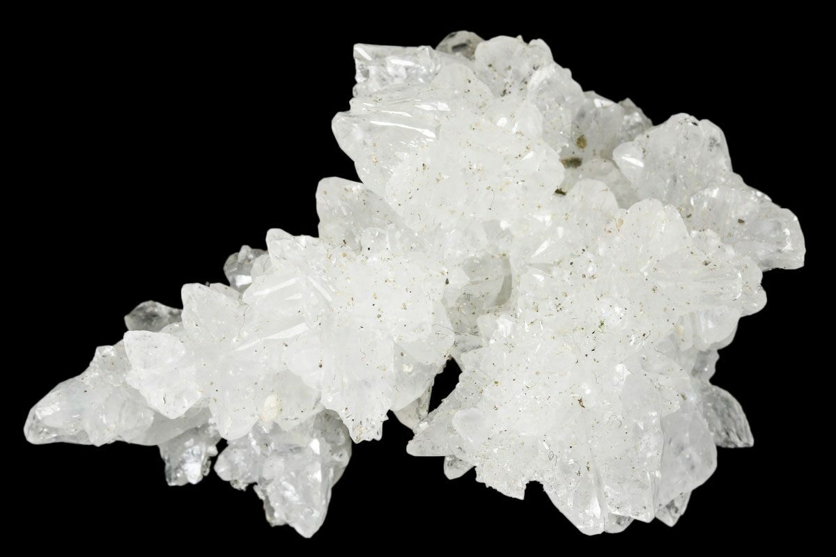 This is a gorgeous, 2.7" wide cluster of sparkling aragonite (cave calcite) that was collected from the Potosi Mine in Chihuahua, Mexico. Under short wave UV, this specimen fluoresces vibrant green.