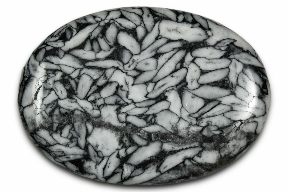This rare material is found almost exclusively in the mountains of Styria, Austria, where it formed during regional metamorphism over 100 million years ago. Pinolite takes an excellent polish, bringing out its dramatic black-and-white patterning, and is prized for cabochons, spheres, decorative carvings, and display specimens.
