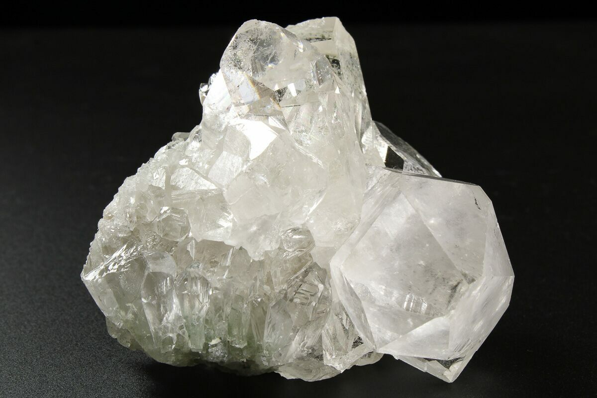 This is a truly unique 2.8" wide cluster of high-quality quartz crystals from Minas Gerais, Brazil. The clarity of this quartz is spectacular. The faces have been polished to reveal spectacular inner details in the crystals.